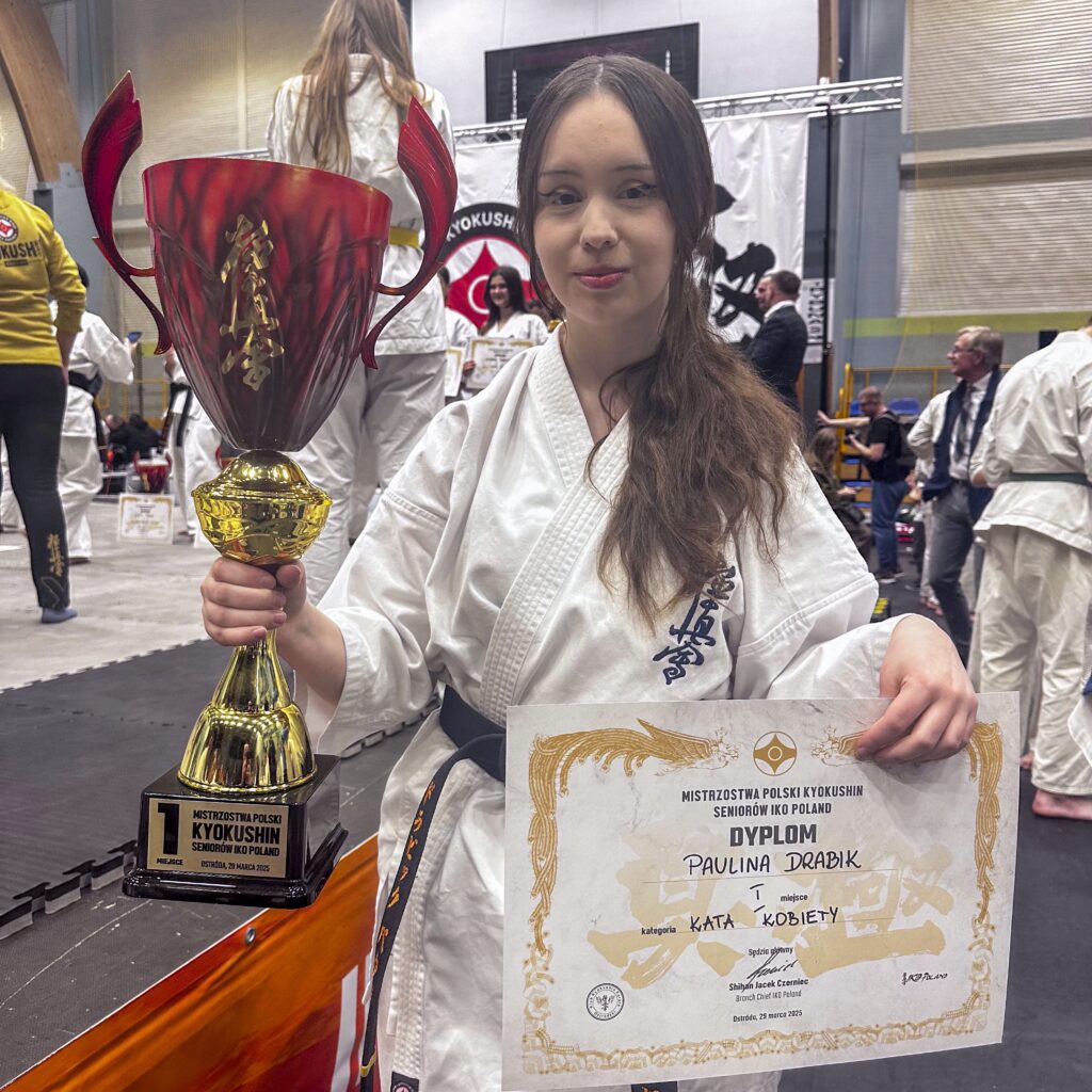 W barwach naszego Klubu wystartowało dwoje reprezentantów. W konkurencji Kata nie zawiodła Sensei Paulina Drabik, która zaprezentowała się na najwyższym poziomie, zdobywając złoty medal i tytuł Mistrzyni Polski!