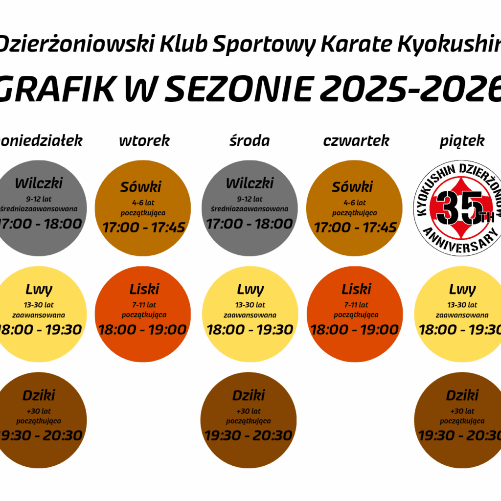 Klub zaprasza na treningi karate z doświadczoną i wykwalifikowaną kadrą na nowy sezon. Zajecia prowadzą: Tomasz Staściuk, 4 dan aktualny Mistrz Europy, multimedalista Mistrzostw Polski, trener 2 klasy ćwiczeń siłowych, instrukor karate i odnowy biologicznej, Agnieszka Matusiak 1 dan, medalistka Mistrzostw Polski, instruktorka karate oraz Ryszard Królikowski 1 dan.