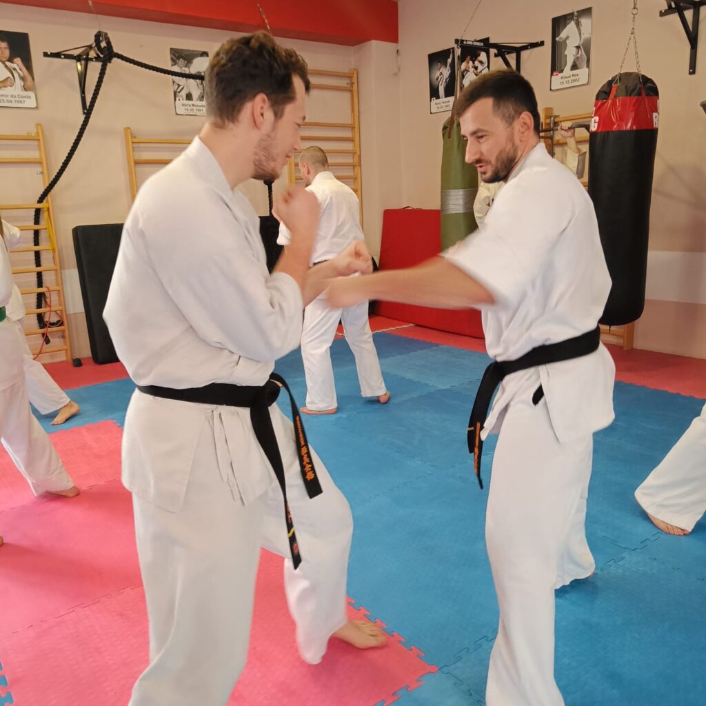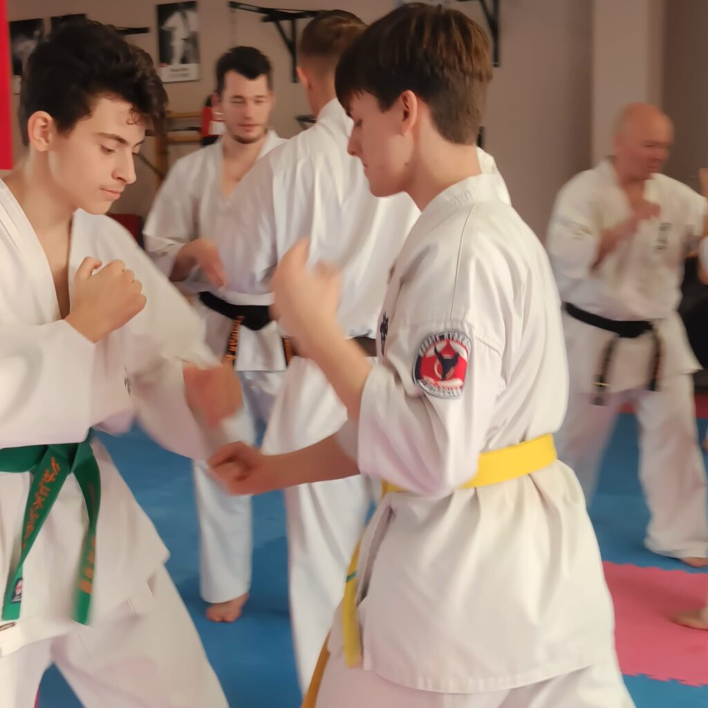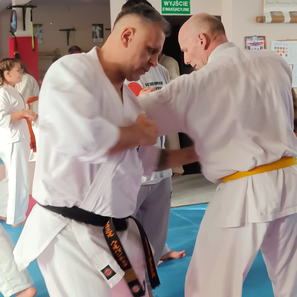 Seminarium W dniach 28–29 listopada 2025 r. (piątek–sobota) w naszym klubie odbyło się intensywne, dwudniowe seminarium karate, stanowiące ważny element szkoleniowy dla wszystkich uczestników. Zajęcia poprowadził shihan Sławomir Urbańczyk, trener kadry narodowej Niemiec, uznany autorytet w środowisku karate oraz wysoce doświadczony szkoleniowiec. Pierwszego dnia odbył się inauguracyjny trening, podczas którego skupiono się na doskonaleniu elementarnych form kihon oraz technik kumite. Trening ten stanowił solidną podstawę do dalszej pracy i pozwolił uczestnikom na lepsze przygotowanie do kolejnych zajęć. Drugiego dnia przeprowadzono trzy sesje treningowe – jedną dedykowaną dla dzieci oraz dwie skierowane do młodzieży i dorosłych. Część młodszych uczestników wzięło udział w treningu dla zaawansowanych, aby móc czerpać wiedzę od tak doświadczonego instruktora. W trakcie wszystkich zajęć widoczne były wysokie kompetencje prowadzącego, jego głęboka wiedza techniczna oraz umiejętność przekazywania skomplikowanych zagadnień w sposób zrozumiały i angażujący. Uczestnicy podkreślali także wyjątkową atmosferę oraz profesjonalne podejście shihana, które motywowały do intensywnej pracy i dalszego rozwoju.