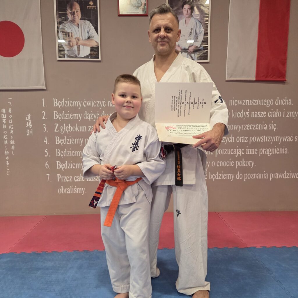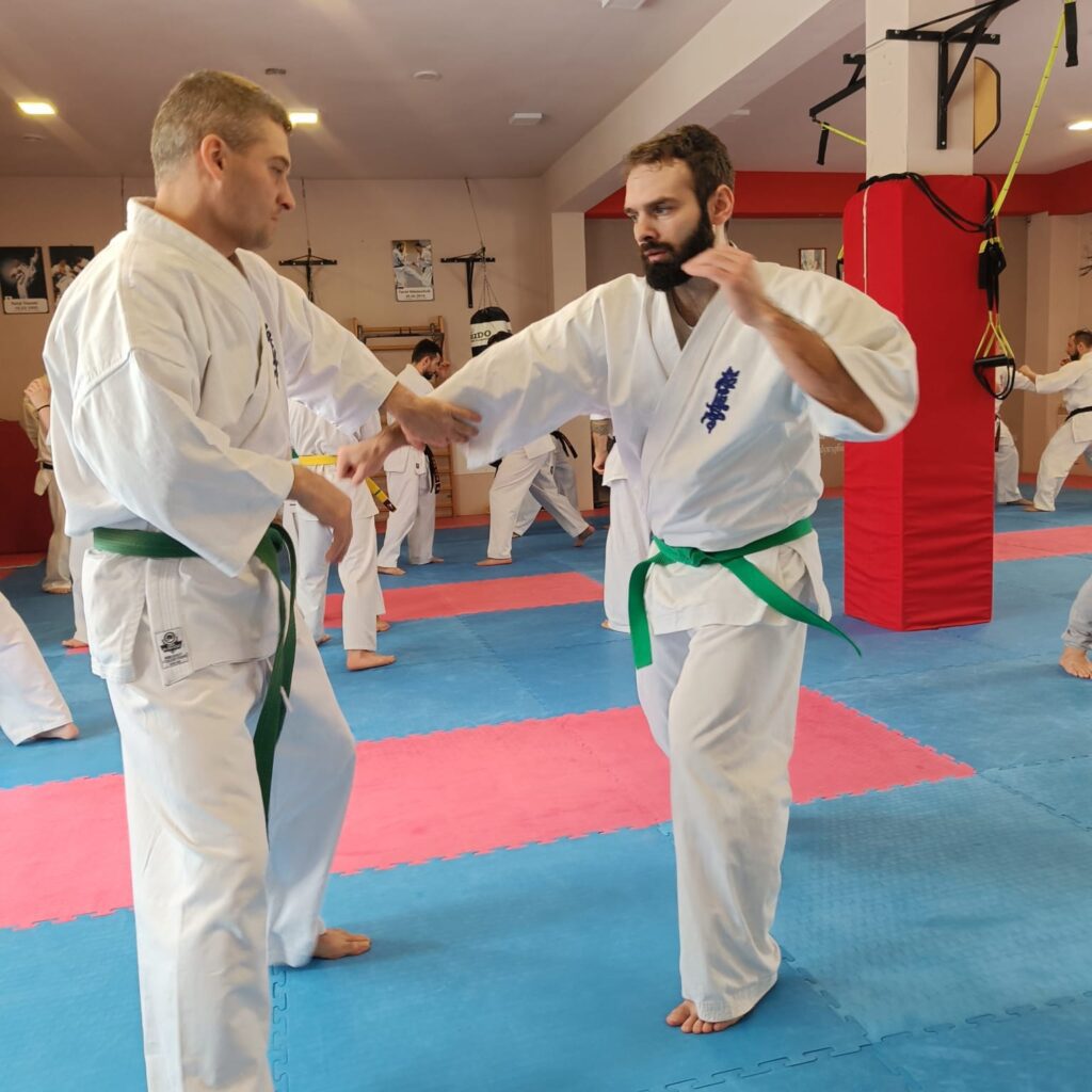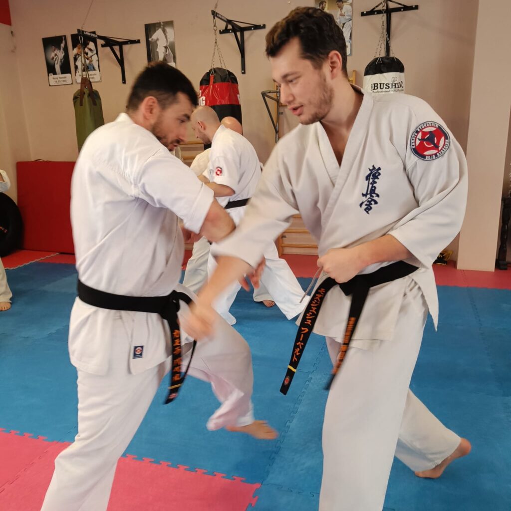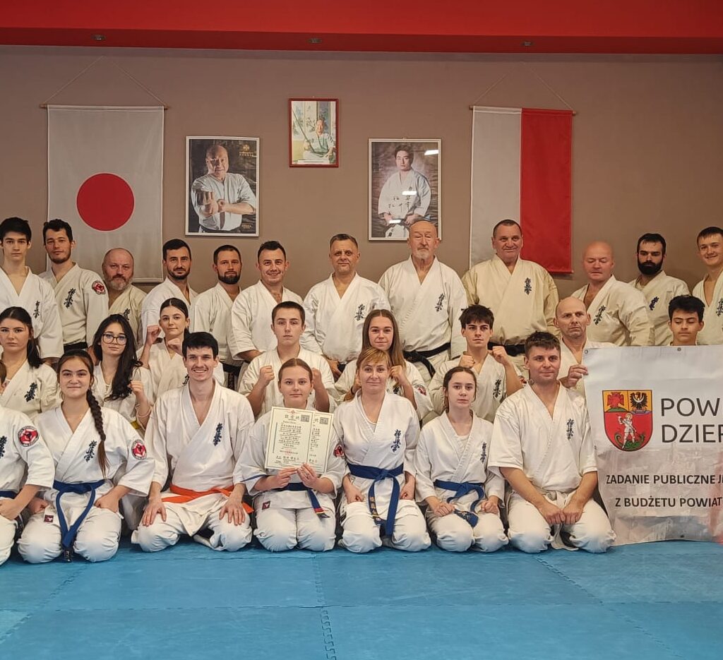 Seminarium W dniach 28–29 listopada 2025 r. (piątek–sobota) w naszym klubie odbyło się intensywne, dwudniowe seminarium karate, stanowiące ważny element szkoleniowy dla wszystkich uczestników. Zajęcia poprowadził shihan Sławomir Urbańczyk, trener kadry narodowej Niemiec, uznany autorytet w środowisku karate oraz wysoce doświadczony szkoleniowiec. Pierwszego dnia odbył się inauguracyjny trening, podczas którego skupiono się na doskonaleniu elementarnych form kihon oraz technik kumite. Trening ten stanowił solidną podstawę do dalszej pracy i pozwolił uczestnikom na lepsze przygotowanie do kolejnych zajęć. Drugiego dnia przeprowadzono trzy sesje treningowe – jedną dedykowaną dla dzieci oraz dwie skierowane do młodzieży i dorosłych. Część młodszych uczestników wzięło udział w treningu dla zaawansowanych, aby móc czerpać wiedzę od tak doświadczonego instruktora. W trakcie wszystkich zajęć widoczne były wysokie kompetencje prowadzącego, jego głęboka wiedza techniczna oraz umiejętność przekazywania skomplikowanych zagadnień w sposób zrozumiały i angażujący. Uczestnicy podkreślali także wyjątkową atmosferę oraz profesjonalne podejście shihana, które motywowały do intensywnej pracy i dalszego rozwoju.