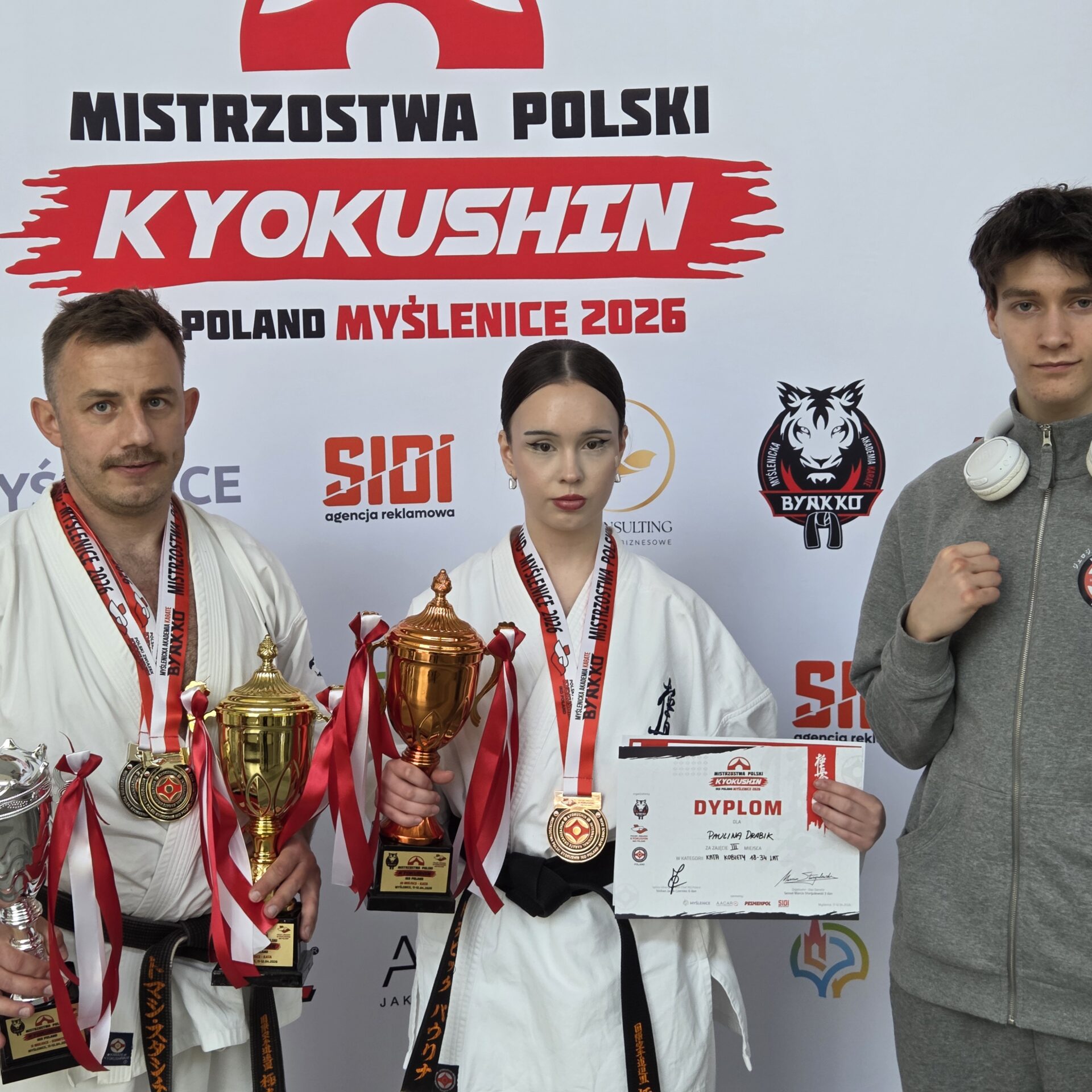 W dniach 11-12 kwietnia w hali Sportowej w Myślenicach odbyły się Mistrzostwach Polski Polskiego Związku Kykushin IKO Poland. Organizatorem wydarzenia była Myślenicka Akademia Karate Byakko na czele z Marcinem Sturgulewskim, a sędzią głównym shihan Jacek Czerniec. W zawodach rywalizowało 700 zawodników z 57 klubów z całej Polski, a wśród nich trójka reprezentantów naszego klubu.