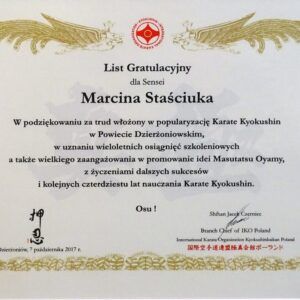 Serdeczne podziękowania należą się dla najbliższych senseja Staściuka, żonie Ewie i synowi Tomaszowi. Pozostali, którzy obecnie są zaangażowani w rozwój klubu i na których zawsze można liczyć to: Ryszard Królikowski, Witold Kiersnowski, Radosław Rosa, Damian Drabik, Tomasz Palimąka, Agnieszka Matusiak, Krzysztof Zawadzki, Wojciech Łyżwa, Radosław Łabuda, Krzysztof Maź i Łukasz Kaczmarek.