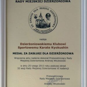Cennym osiągnięciem dla działaczy i zawodników klubu było otrzymanie dnia 25.02 2013r roku Medalu za zasługi dla Miasta Dzierżoniowa.